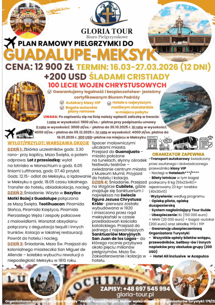 Z wielką radością informujemy, że otwieramy zapisy na absolutnie oryginalną i fantastyczną pielgrzymkę do Fatimy z oryginalnym planem ramowym i fantastyczną przewodniczkę , który stworzyliśmy dla Was, aby była wyjątkowa tak jak Nasi pielgrzymi.